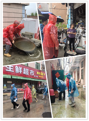 徒手掏起排水口枯枝淤泥,硬是把堵塞的暗渠“抢通”,瞬间排走200余立方米积水。