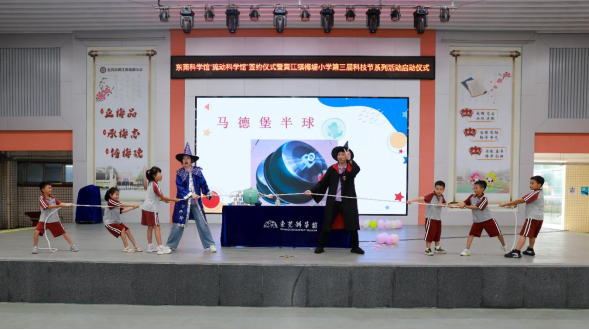 为提升全民科学素养,助力“百千万工程”,推进我市全国中小学科学教育实验区建设,9月9日下午,东莞科学馆“流动科学馆”签约仪式暨黄江镇梅塘小学第三届科技节系列活动启动仪式在梅塘小学隆重举行。