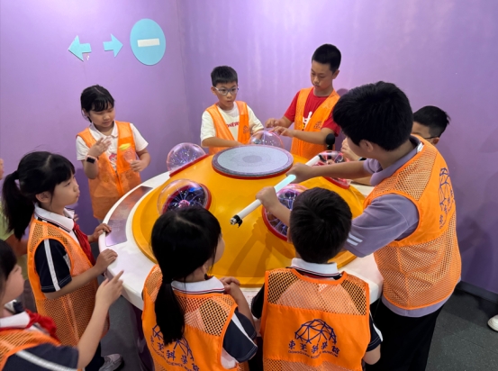 这一阶段,我们把 “主动权” 彻底交给孩子!他们自由组队,围绕展品脑洞大开,设计新玩法——没有成人视角的束缚,孩子们的创意简直像开了挂!有的小组为漩涡展品设计配套实验,通过实验观察物品在漩涡中的运动直观理解漩涡的危险性;有的为潜望镜搭建展品设置计时赛,比谁搭得快、用得对;还有的小组为柔和电击展品设计多人互动玩法和“点亮灯泡”挑战,让科学体验更具挑战性。组队协作中,沟通力、动手力、创新力全在线,这些充满童趣的玩法,也给研学方案提供了超棒灵感,让活动更对孩子的“胃口”!