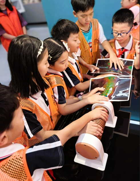 今年夏天,东莞科学馆迎来了一批特殊的“工作人员”——150名来自东莞市莞城中心小学三年级的小小科学辅导员。他们身穿专属马甲,在展厅中细心观察、认真记录、生动讲解,一下子从 “安静的小观众”变成了“超能干的探索者”,身份转变也太酷了吧~