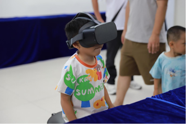 戴上VR眼镜,参与者瞬间“置身”深海、太空、微观世界及科学馆特色展览等虚拟场景。该体验不仅拓展了青少年的科学视野,更激发了他们对宇宙、微观世界的探索欲。