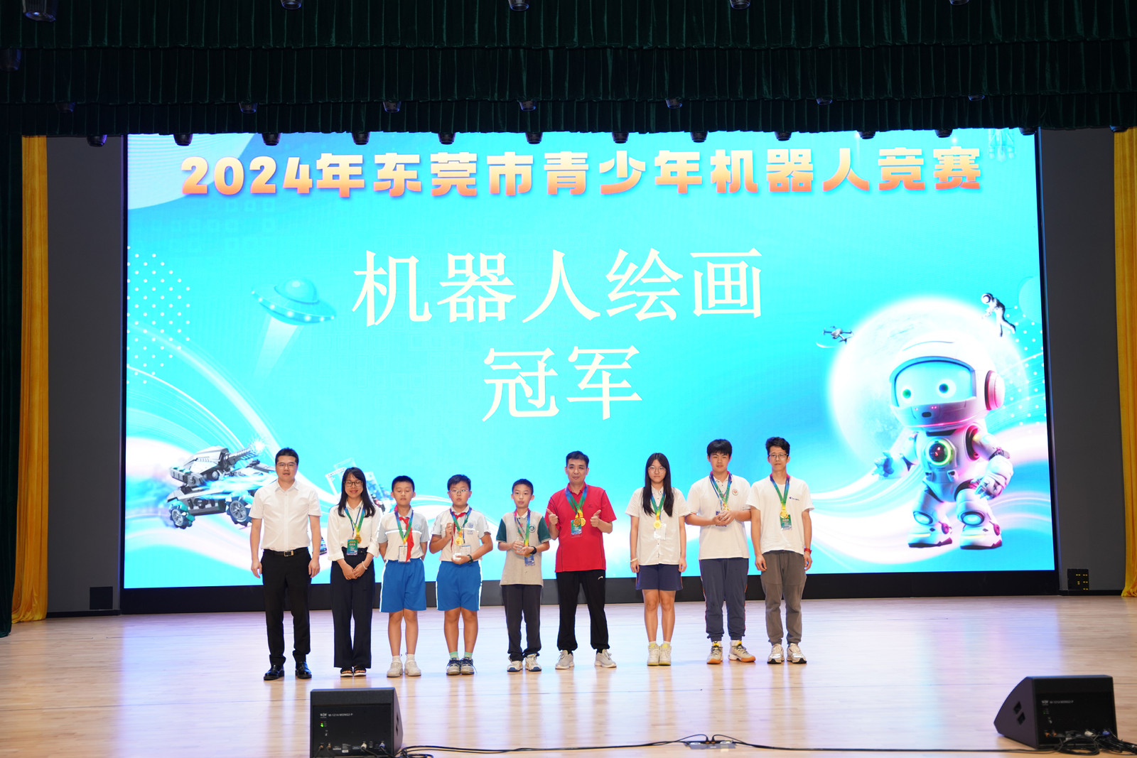 机器人绘画项目由东莞市塘厦镇中心小学邹璟腾、卢斌阳获得小学组冠军,东莞市众美中学钟俊、张绍宸获得初中组冠军,东莞市第六高级中学曾庆邦、吴婧儿获得高中组冠军。