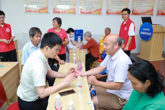 活动现场,来自市人民医院心血管内科苏少辉主任医师、内分泌科黄广英副主任医师、神经内科成蔚阳主治医师等医务人员为群众问诊,了解健康状况,并进行脉搏、血压、血糖等常规体格检查,细心为大家分析健康情况,针对性地提供常见病、多发病、慢性病诊疗咨询和健康指导。