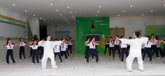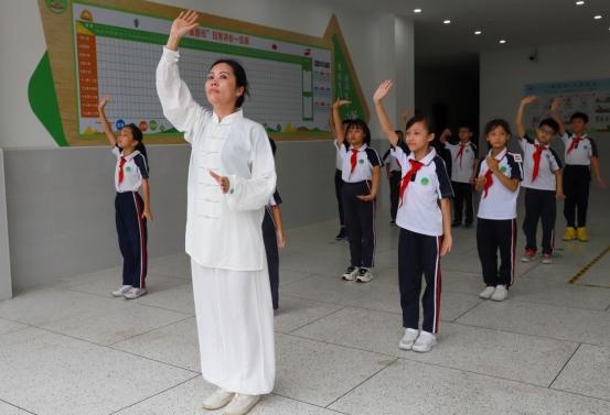 讲座后,现场的专家为同学们传授了八段锦的技巧,吸引了一大批同学驻足学习。