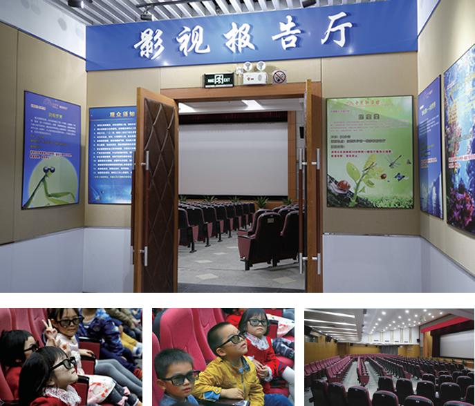 为满足公众对科普展示形式多元化的追求,深化主题展览对公众的影响,科学馆在2015年完成了一楼影视报告厅3D影院的改造。现在,影院定期购置热门科普小电影,于周末免费放映,深受市民欢迎。
