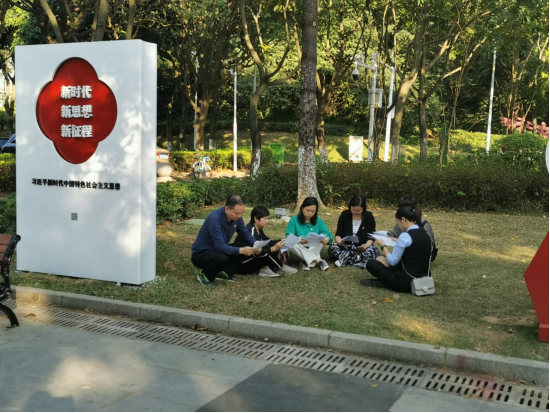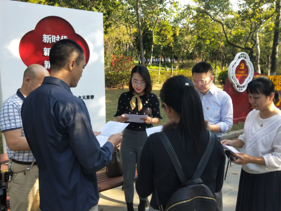 随后,支部党员来到南城元美公园,参观新落成的东莞党建文化主题公园。大家边走边看,参观了党建文化主题公园的旗帜之园、征程之园、精神之园、莞邑之园,在游园观景中接受党史党建教育和党建文化熏陶。