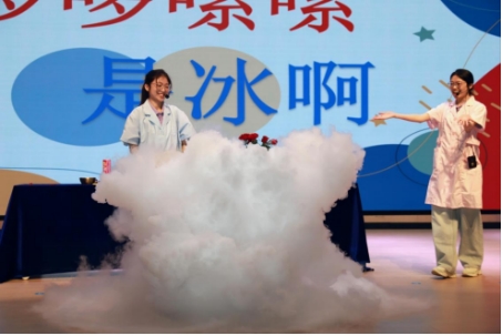 科学秀“哆哆嗦嗦是冰呀”表演中,科学馆辅导员将液氮的神奇特性展现得淋漓尽致,在奇幻的实验现象与生动的剧情演绎中,同学们沉浸在科学的奇妙世界里,掌声雷动,不少同学表示意犹未尽,脸上满是求知的渴望。