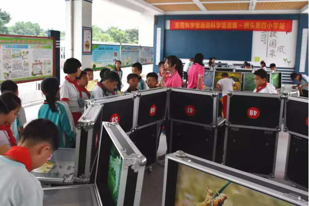 本次“流动科学馆”巡展为桥头第四小学带来了我馆主打巡展项目—“多彩的昆虫世界”,展览含括了来自世界各地各类精美昆虫标本250余种,使师生们足不出户便能近距离接触观赏世界各具特色的昆虫,深入了解昆虫的世界,学习到形态各异的昆虫口器的作用原理等科普知识,大大地扩展了学生们的视野。