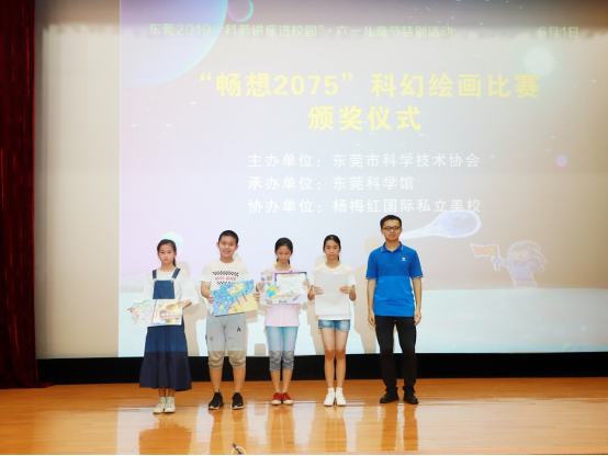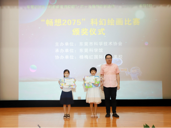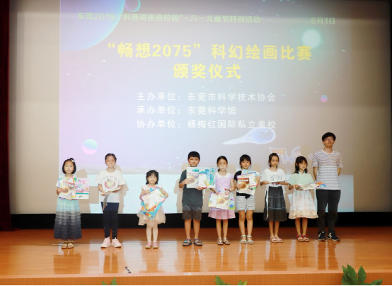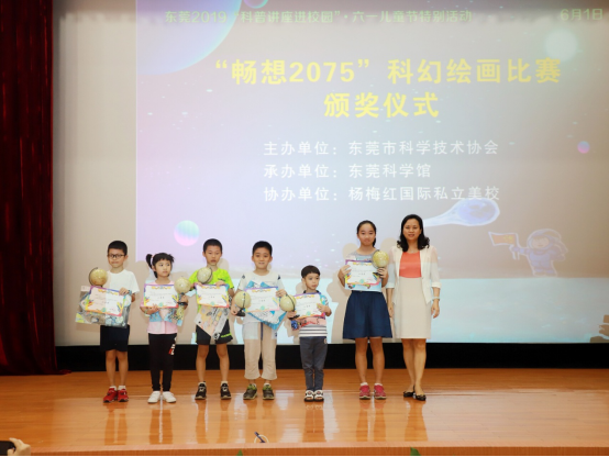 本次六一儿童节科普活动,我馆对“畅想2075”科幻绘画比赛结果举行颁奖仪式,为获奖选手颁发由东莞市科学技术协会认证的获奖证书和东莞科学馆提供的精美礼品。