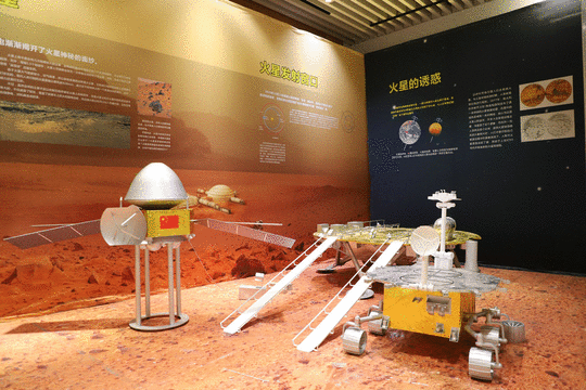 在这里,你可以看到“天问一号”高仿真模型,展区通过图文和投影等方式展示“天问一号”各个组成部分及功能,让您现场领略我国航空航天科技魅力。