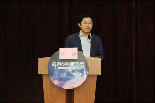 ——空间用高效多结太阳能电池” 讲座,讲座中汪洋高级工程师为现场观众科普了航天器的电源系统并介绍了空间用高效多结太阳能电池材料及其应用。