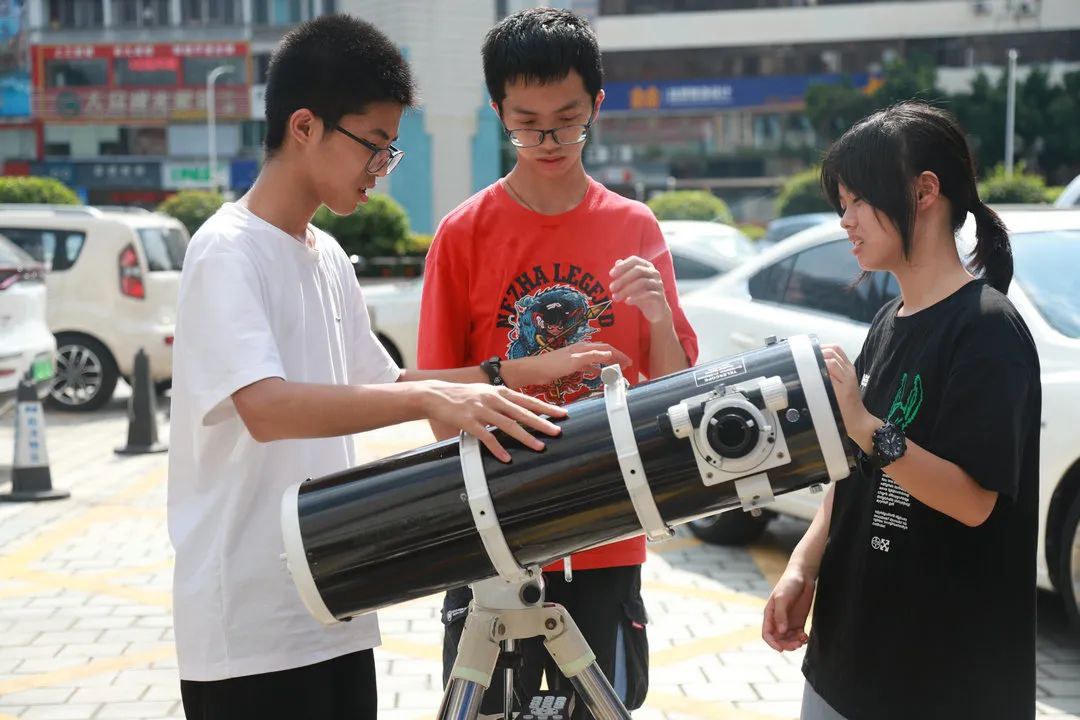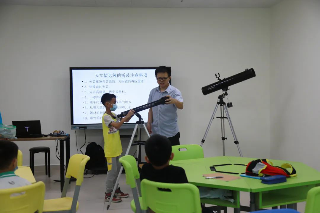 学员在组装天文望远镜