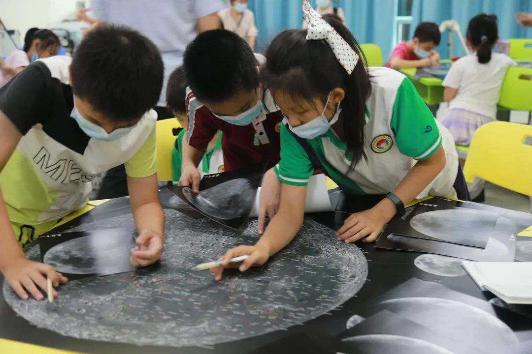 学员在用月面地图查找环形山名称