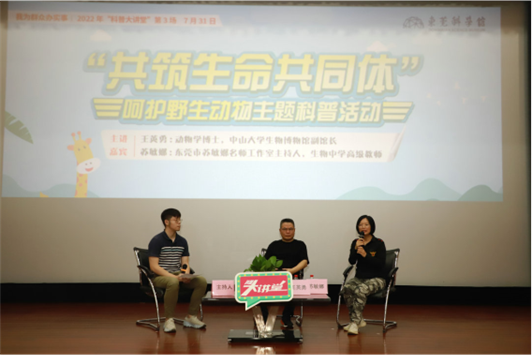 在党的二十大即将召开之际,我馆积极开展“我为群众办实事”实践活动,为提高市民保护野生动物的意识,弘扬生态文明理念,促进人与自然和谐发展,7月31日下午,2022年“科普大讲堂”第3场——“共筑生命共同体”呵护野生动物主题科普活动如期而至。
