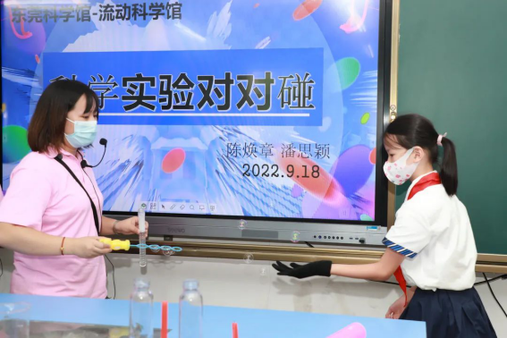 金秋送爽,丹桂飘香。为助力2022年横沥镇全国科普日嘉年华活动,推动镇街全民科学素质全面提升,9月19日,东莞科学馆以“喜迎二十大,科普向未来”为主题,结合东莞市新时代文明实践“五色花计划”,将“流动科学馆”走进松山湖横沥实验学校进行巡展,给全体师生送来了一场集科学性、趣味性、参与性为一体的科普盛宴。
