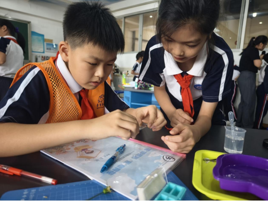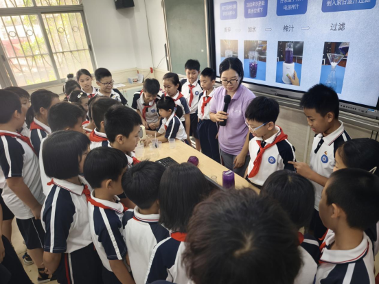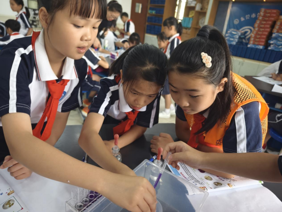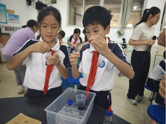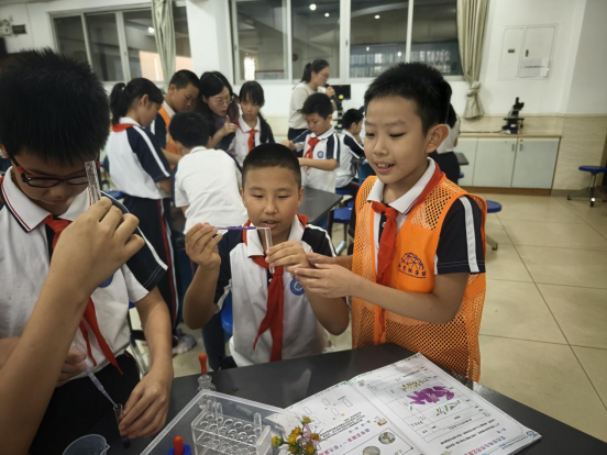 上学期通过馆校合作培养的一批步步高小学生科探小小辅导员,带着在科学馆实践收获的方法技能,也出现在实验操作的各个环节。他们专注的神情、规范的操作显露出探索科学奥秘的光芒在活动当中传递榜样力量