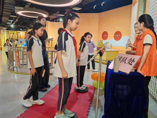 傍晚17时,科学馆门口已热闹非凡,来自莞城街道、东城街道的学生亲子家庭分批有序入馆,凭学校发放的“全运挑战卡”,与十五运吉祥物喜洋洋和乐融融一起开启一场别开生面的科学体育融合之旅。