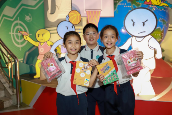 随着挑战的完成,孩子们兴奋地来到一楼展厅前台兑奖。另外,集齐5枚印章的参与者凭打卡“喜迎全运会·科学馆奇妙夜”的九宫格朋友圈以及“全运挑战卡”兑换了全运会吉祥物小奖励。