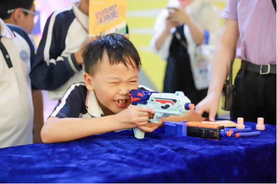 声光展区——鹰眼狙击者考验着参与者的专注力与精准度。射击区里,小选手们个个凝神屏息,这个看似简单的射击项目,实则蕴含着丰富的科学原理。孩子们在体验中不仅锻炼了手眼协调能力,更通过实践理解了光的直线传播等知识。