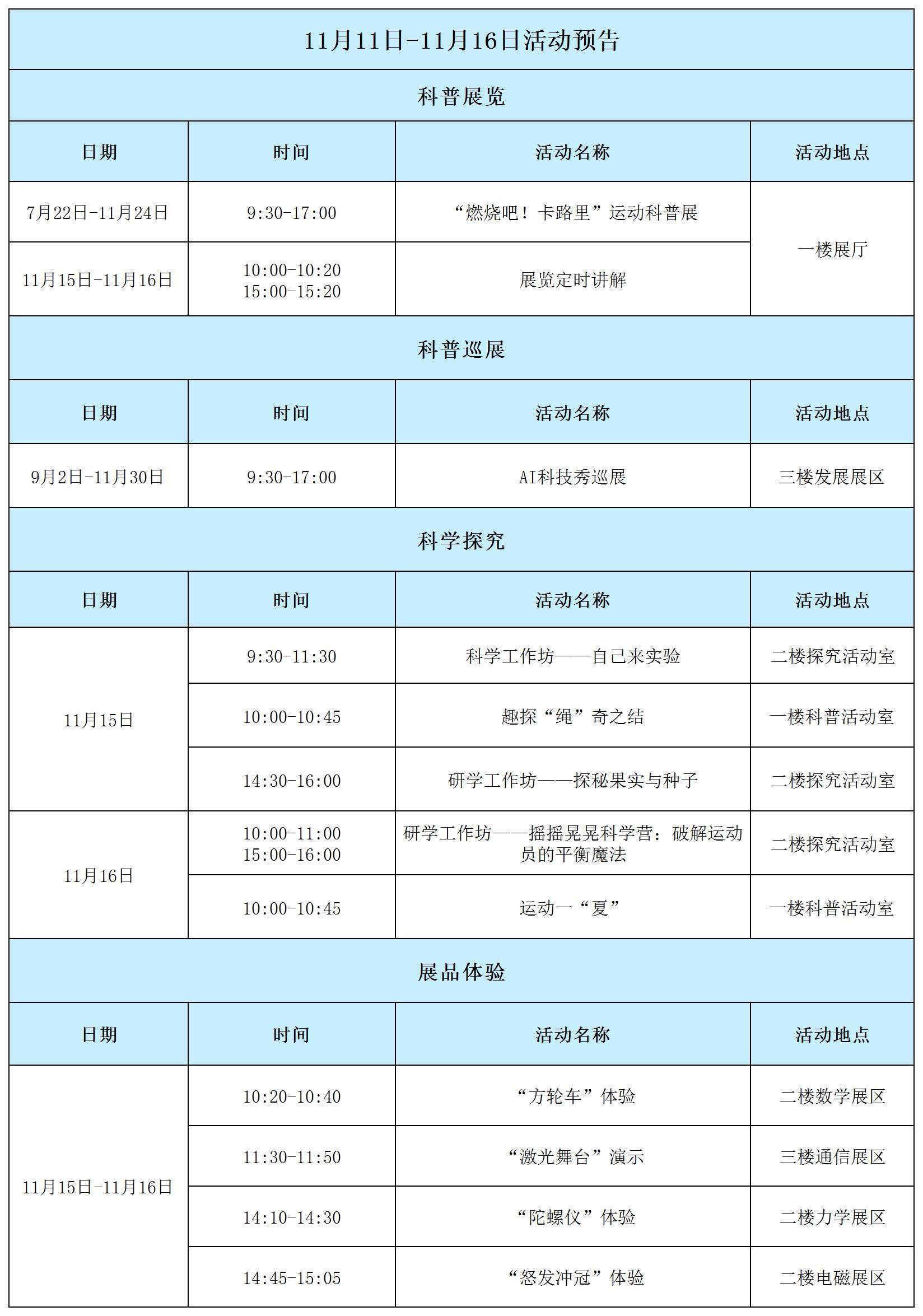 11月11日-16日活动预告