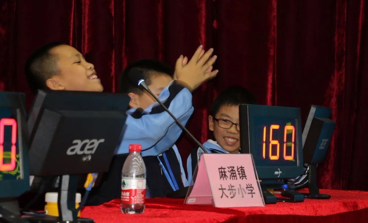 麻涌镇大步小学代表队庆祝答题得分(小学组特等奖)
