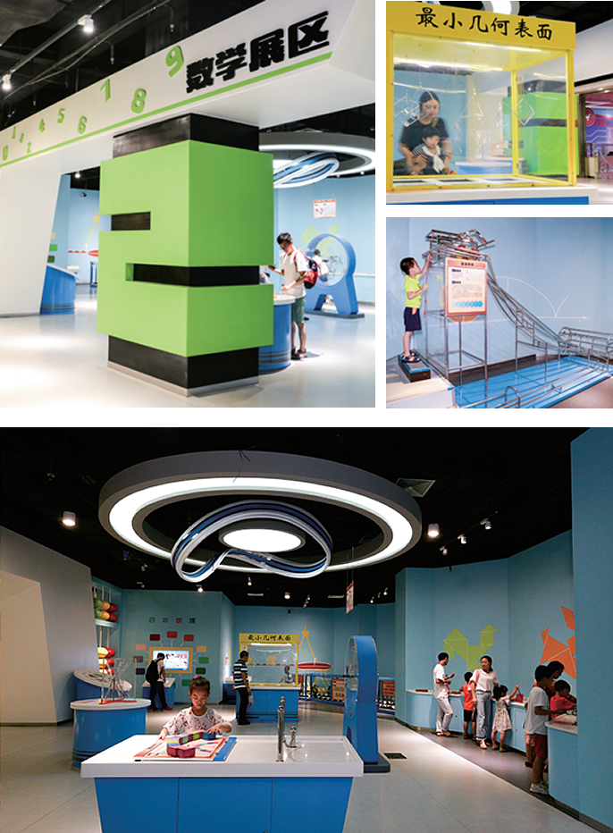 共有展品14件,直观演示了勾股定理、最速降线、几何表面等经典数学的原理或现象,以及悬链线、二进制等原理的应用。